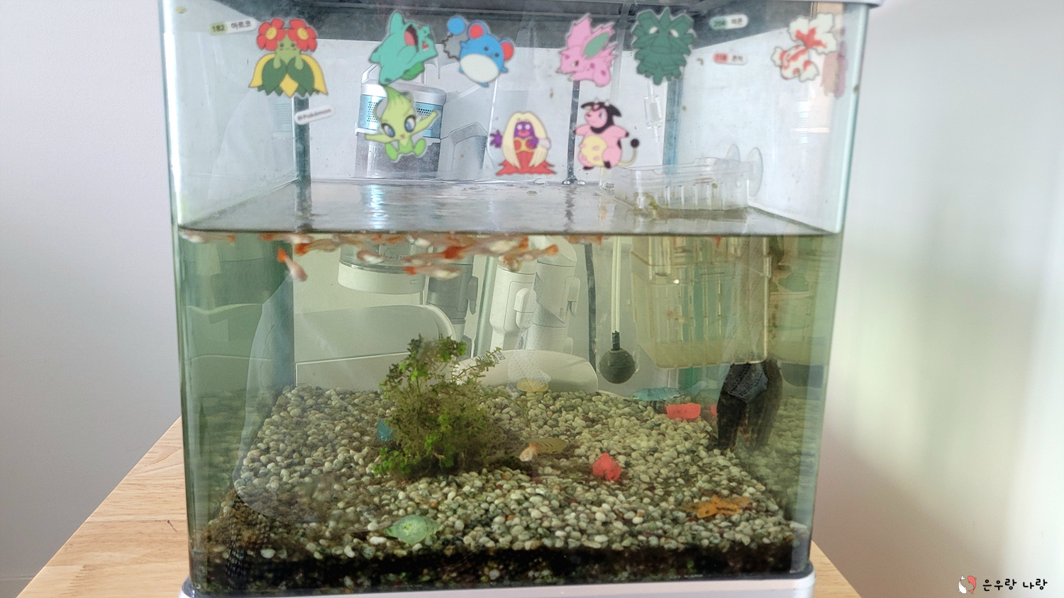 집에는 오래된 어항이 하나 있는데 수초가 다 뽑혀 얼마 없어