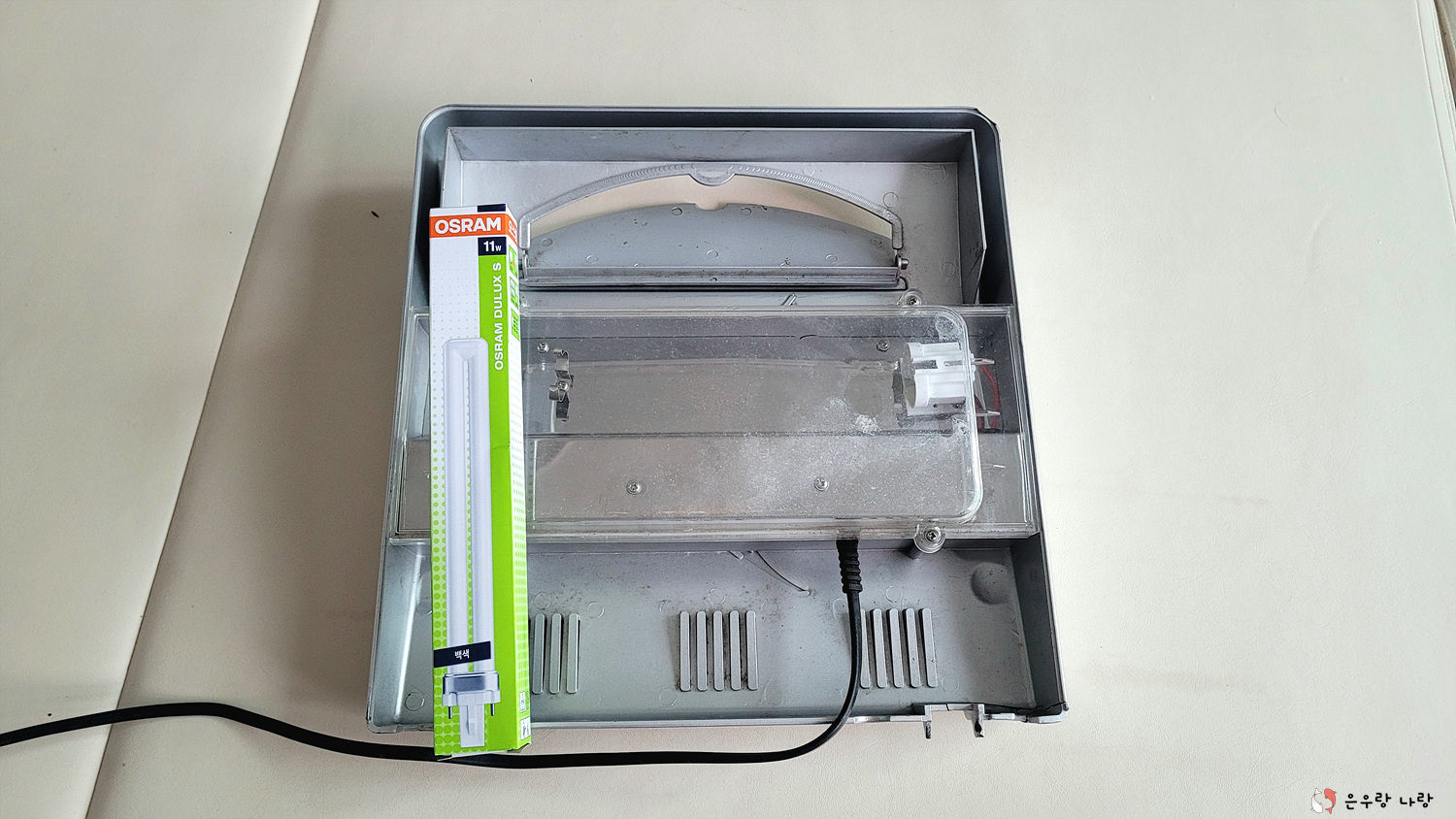 뚜껑을 열었더니 형광등 하나가 보입니다