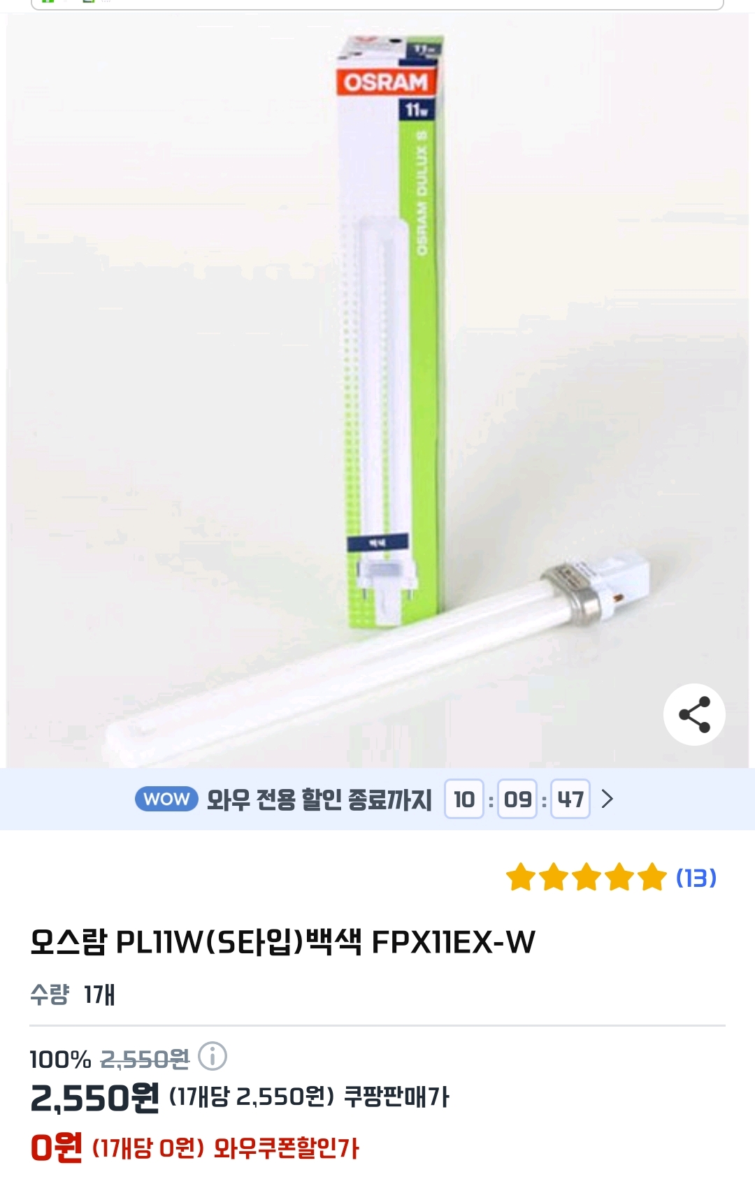 저는 이 형광등이 일반 전등 현광등 사이즈 작은 걸로 알고 쉽게 봤는데